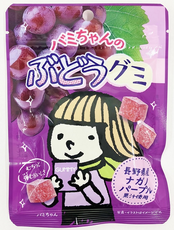 長野県産ナガノパープル果汁を使用した、バミちゃんのむちっと弾むおいしさのグミです。